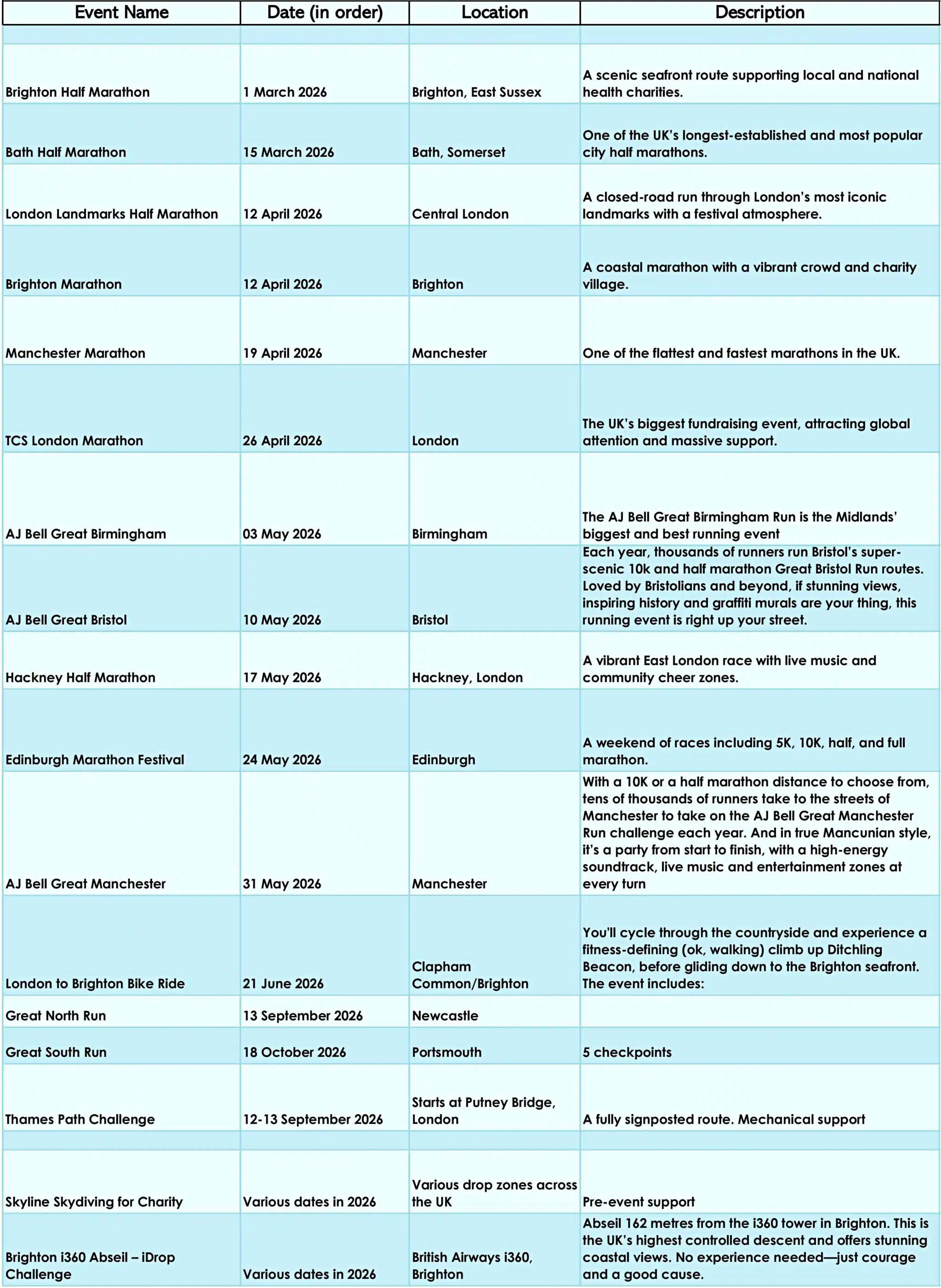 To help you find the one for you, we have helpfully provided links to all the major runs and challenges. Do go and have a look.