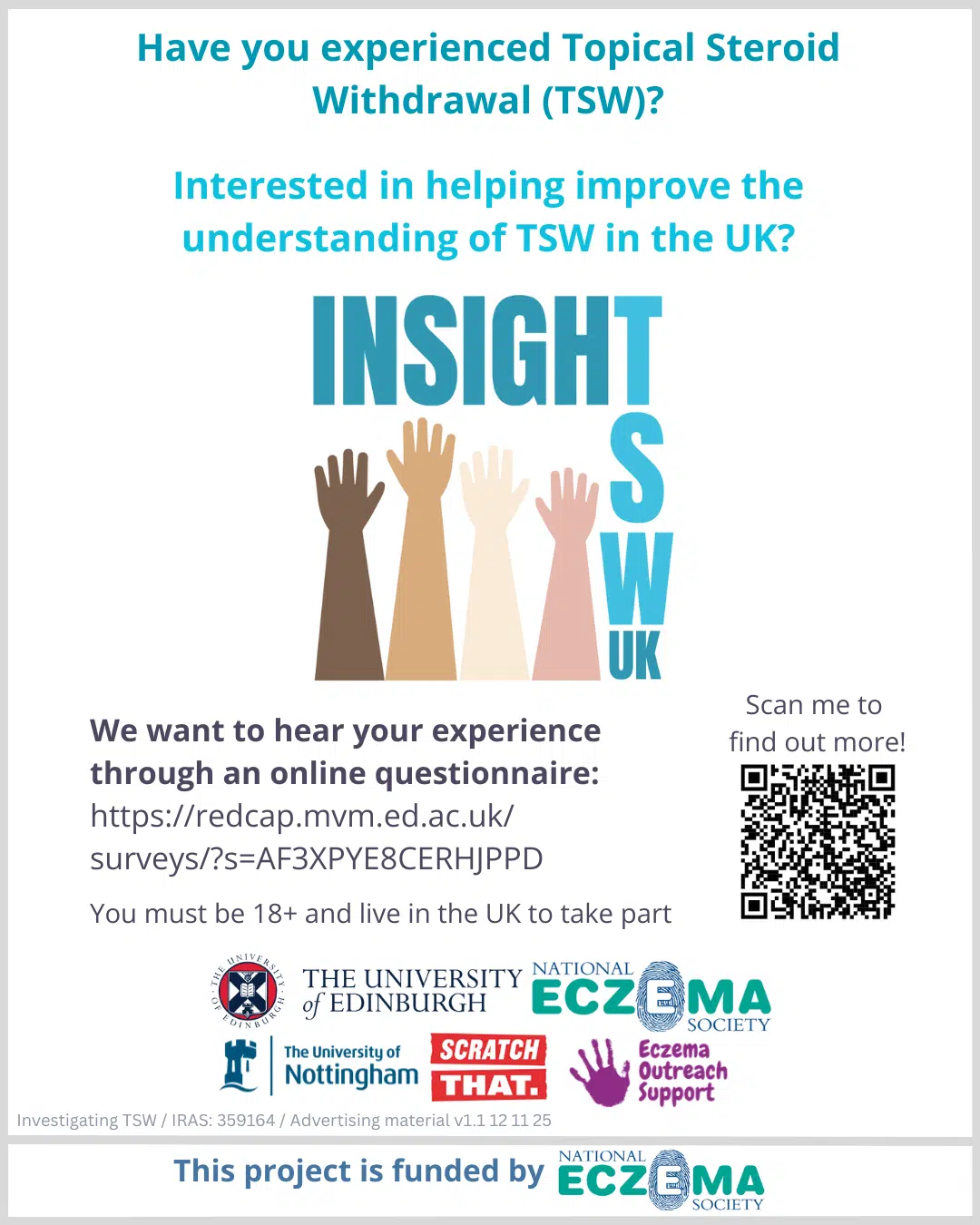 The National Eczema Society (NES) is committed to supporting advancements in eczema research by partnering with reputable organizations, institutions, and researchers. However, NES does not endorse, guarantee, or take responsibility for the conduct, findings, or outcomes of any independent studies, research projects, or clinical trials conducted by external entities. Participation in external studies is entirely voluntary, and any decisions made by individuals, healthcare providers, or third parties based on external research are their own.